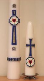 De collectie kaarsen met Lutherroos wordt binnenkort nog toegevoegd aan de "web shop". Tot dan kunt u uw bestelling doorgeven per e-mail aan info@slab.nl waarvoor bij voorbaat hartelijk dank en excuses voor het ongemak hierbij. Elk type kaars heeft een code die u op de betreffende prijslijst naast de foto ziet staan. Vermeld die code in uw bestelling met het aantal. Dan uw naam, adres, postcode en woonplaats. Klik hier op de foto van uw voorkeur om uw bestelling voor te bereiden. |